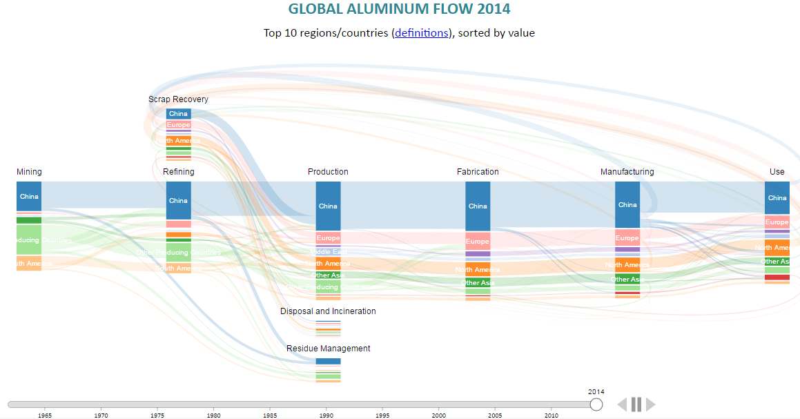 De markt voor aluminium is sterk aan het veranderen. We zien veel nieuwe regio’s die aluminium produceren en gebruiken, met als koploper China natuurlijk. Met deze snel veranderende markt is het natuurlijk belangrijk dat we inzicht krijgen in de handelsstromen van aluminium, van ruwe materialen tot eindproducten. Daarom heeft het Internationaal Instituut van Aluminium (The International Aluminium Institute) een handige tool uitgebracht, waarmee de markt van aluminium in kaart kan worden gebracht.